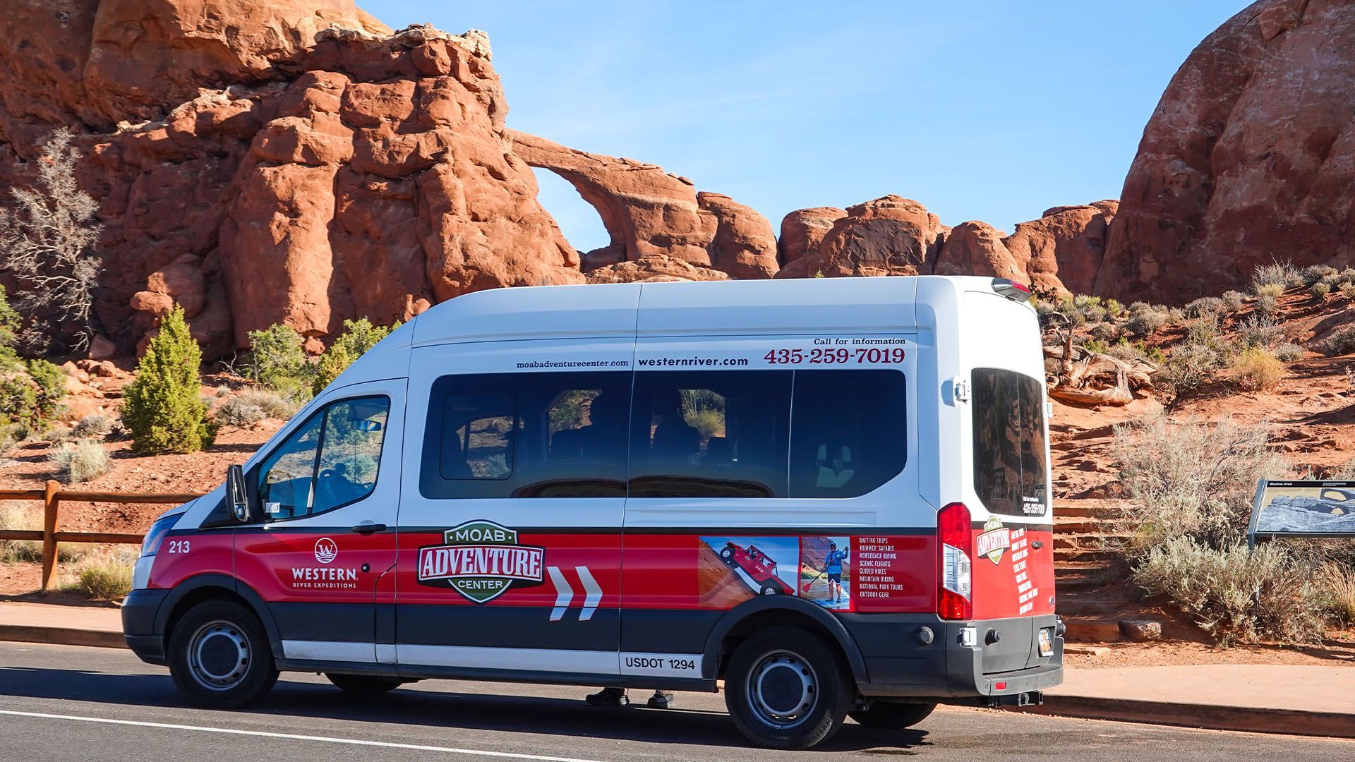 Round-trip transport from Moab Adventure Center to the Bow and Arrow trailhead.