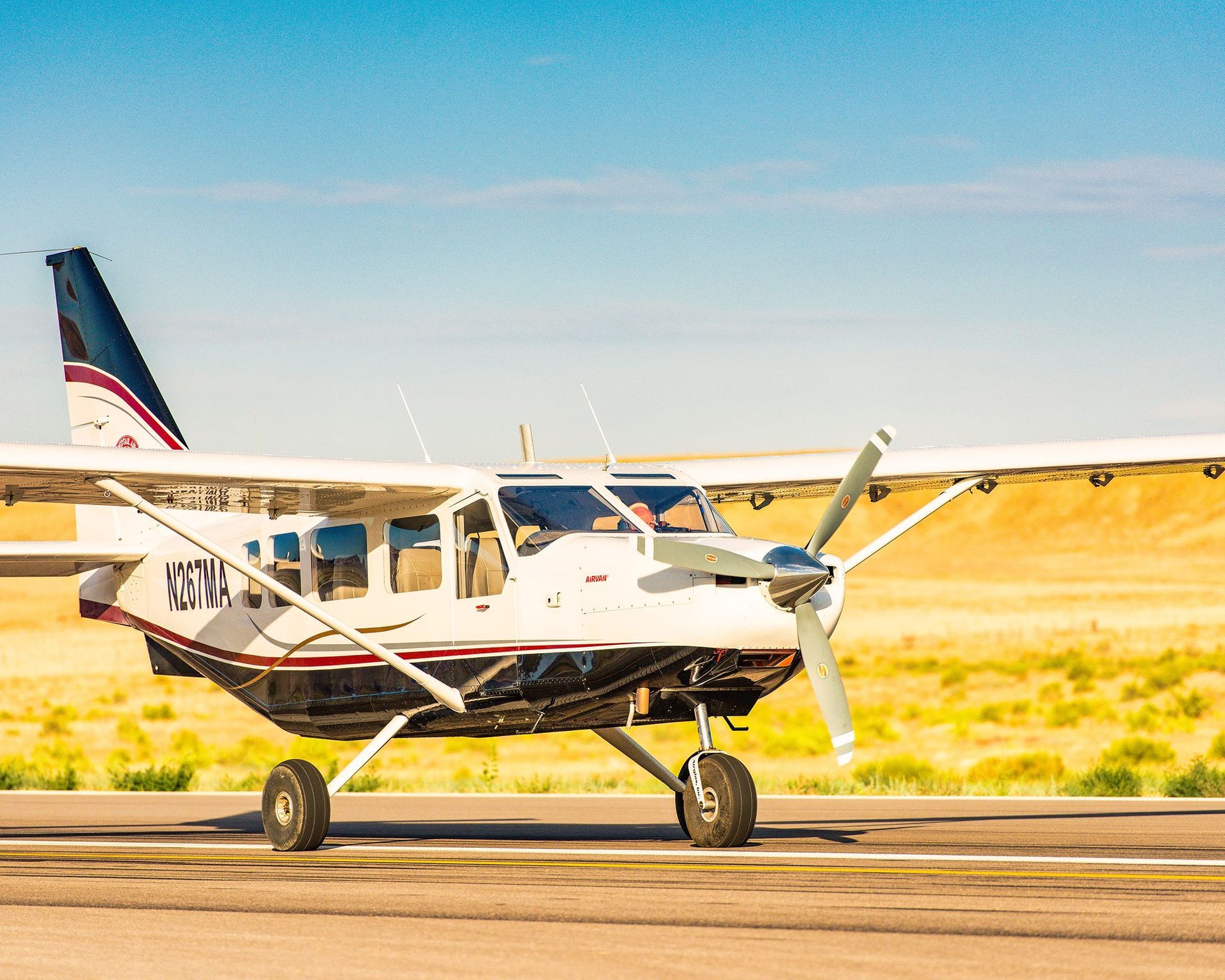 High-wing aircraft with oversized windows for panoramic canyon vistas.