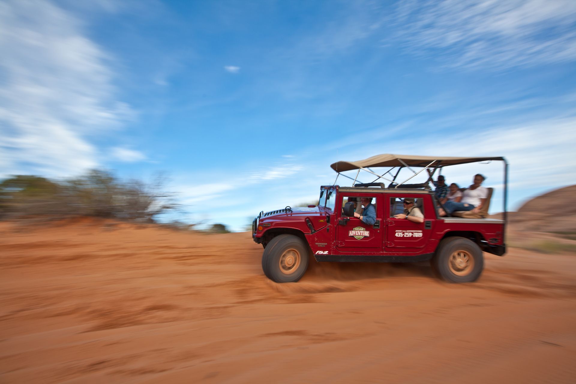 Ride in a powerful, open-air Hummer built to conquer slickrock and steep desert trails.